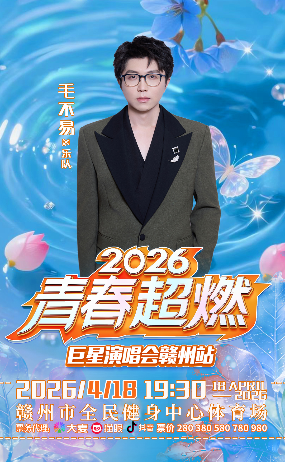 4月18日,江西赣州市将迎来一场前所未有的音乐狂欢!2026青春超燃巨星演唱会(赣州站) 将于当晚19:30在赣州市全民健身中心体育场火热开唱。毛不易、林志炫、潘玮柏、洛琦四位华语乐坛实力唱将强势集结,为赣州歌迷带来一场跨越青春的音乐盛宴。